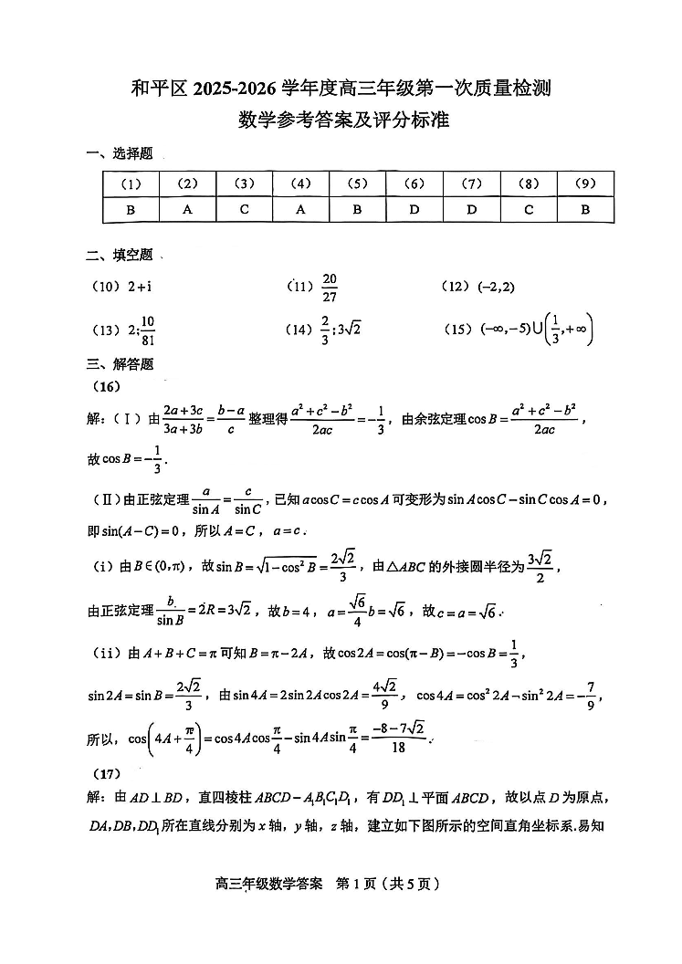 和平区2025-2026学年度高三年级第一次质量检测 数学答案.pdf
