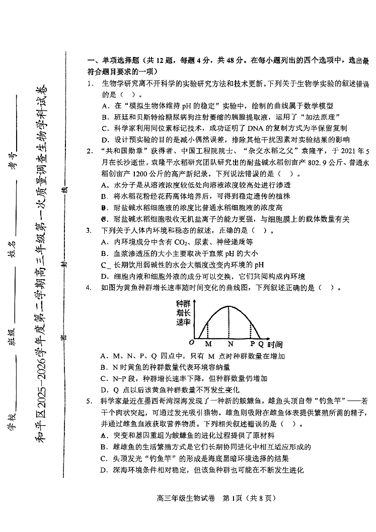 和平区2025-2026学年度高三年级第一次质量检测 生物.pdf