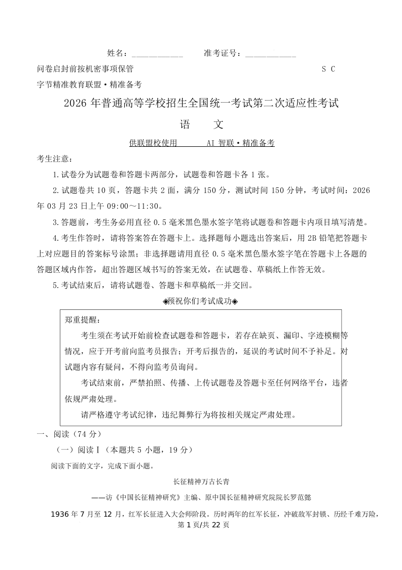 四川省字节精准教育联盟2026届高三下学期第二次适应性考试 语文答案.docx
