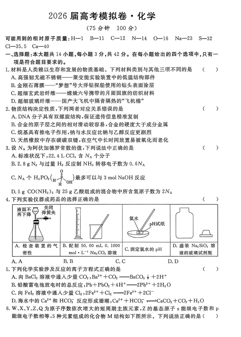 河北省沧州市五校2026届高考模拟卷 化学试题(含答案).pdf