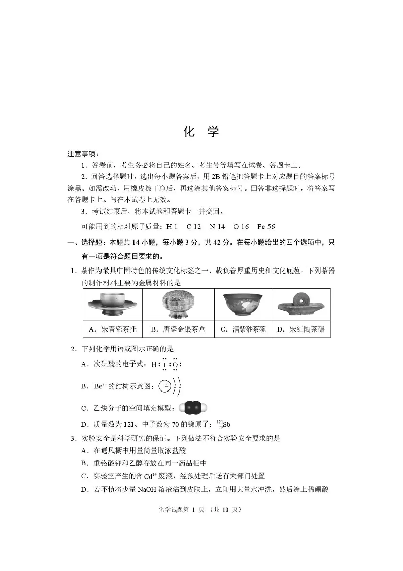 河南省2026届高三下学期高考适应性考试 化学.pdf