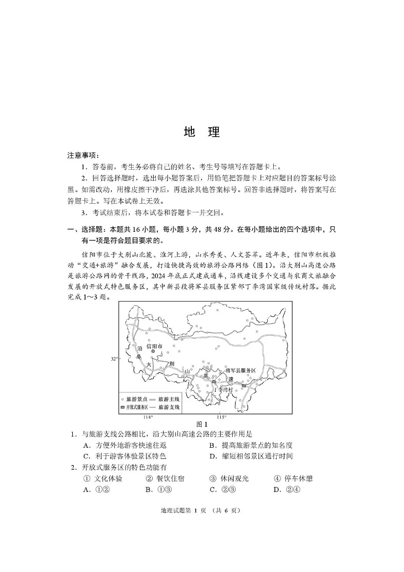 河南省2026届高三下学期高考适应性考试 地理.pdf