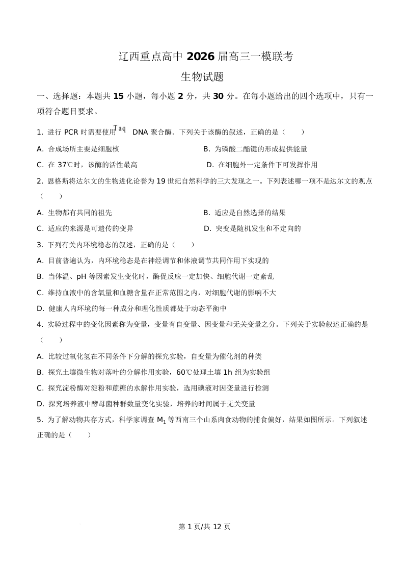 辽西重点高中2026届高三一模联考 生物.docx