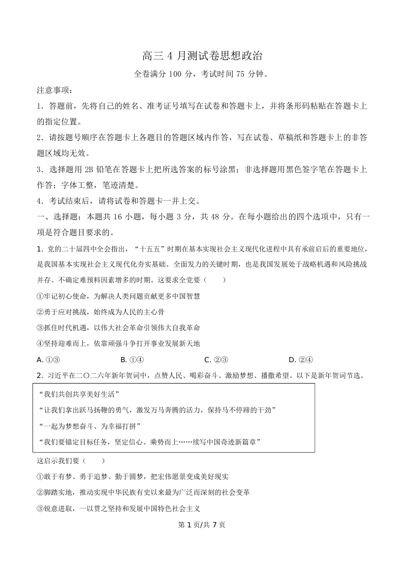 辽宁省县级重点高中协作体2026届高三下学期4月测试 政治.docx