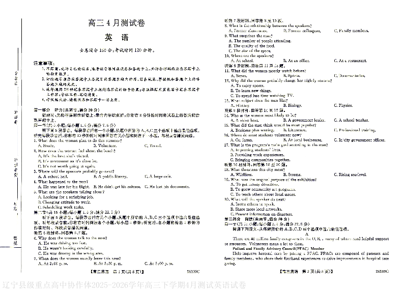 辽宁省县级重点高中协作体2026届高三下学期4月测试 英语.pdf