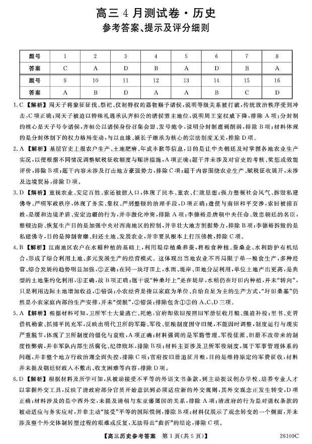 辽宁省县级重点高中协作体2026届高三下学期4月测试 历史答案.pdf