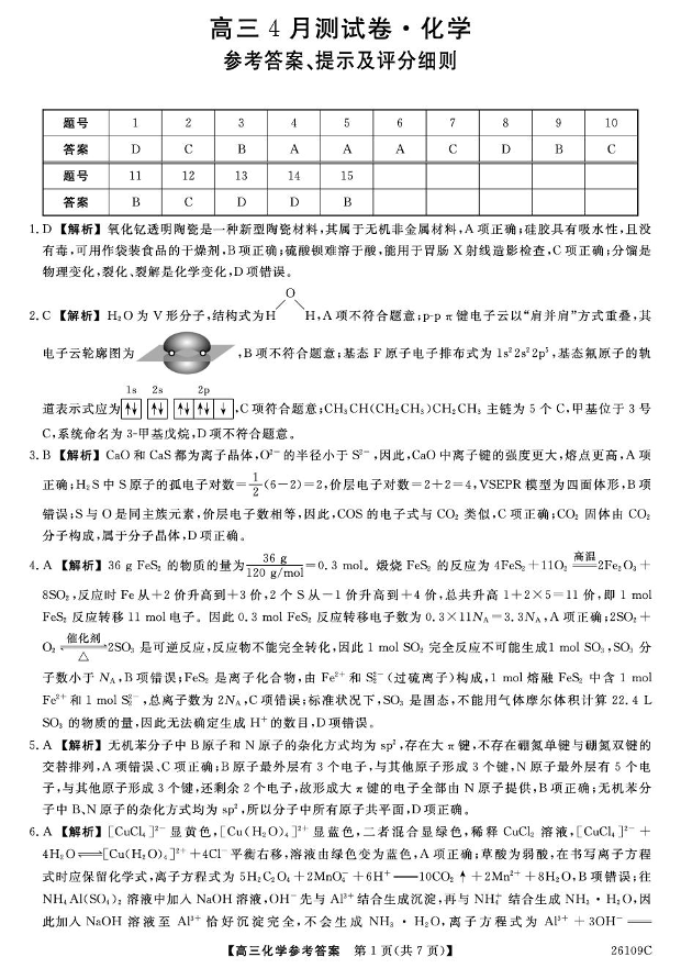 辽宁省县级重点高中协作体2026届高三下学期4月测试 化学答案.pdf
