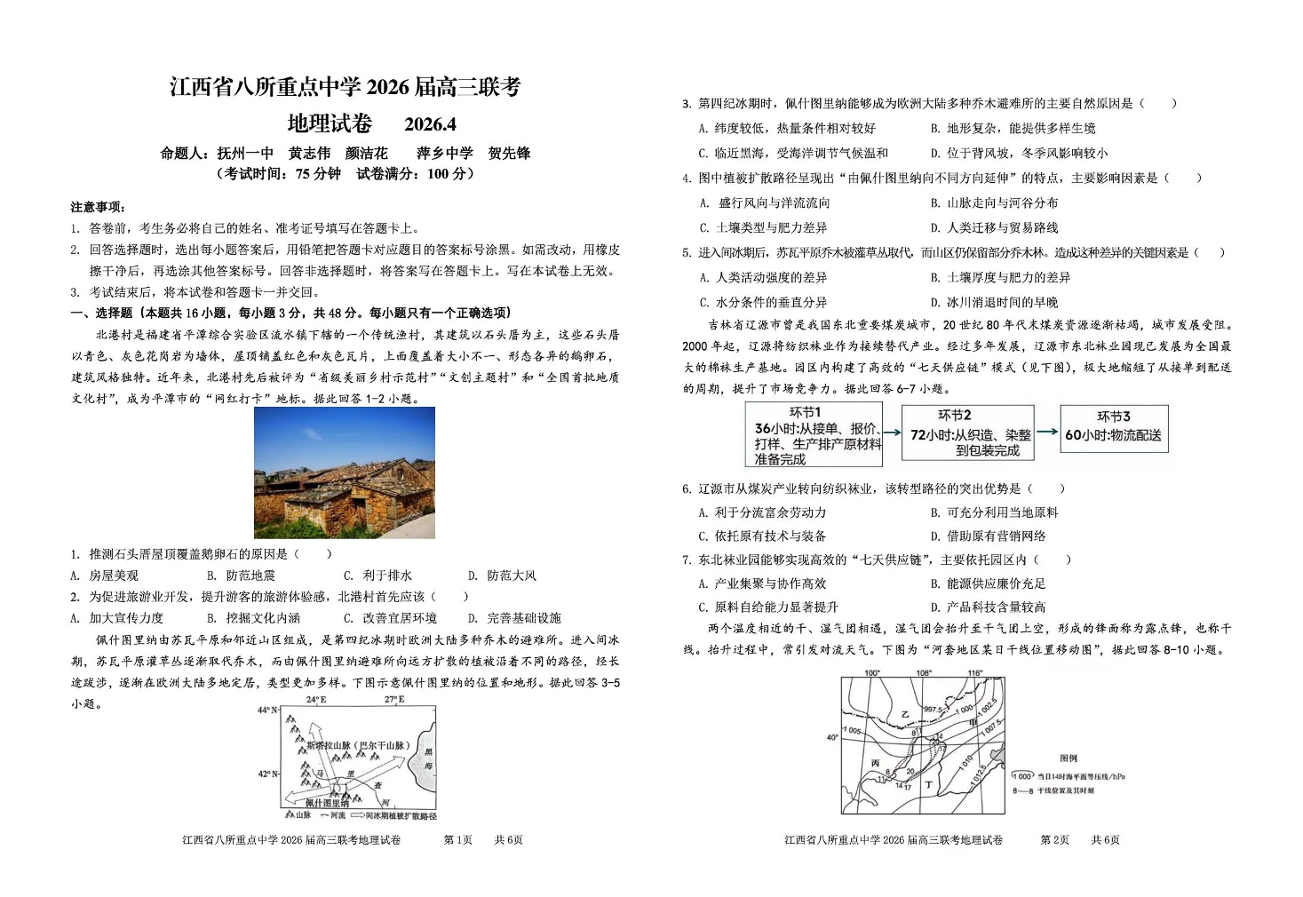 江西省八所重点中学2026届高三联考 地理.pdf