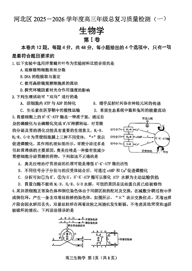 天津河北区2025-2026学年度高三年级总复习质量检测(一)生物.pdf