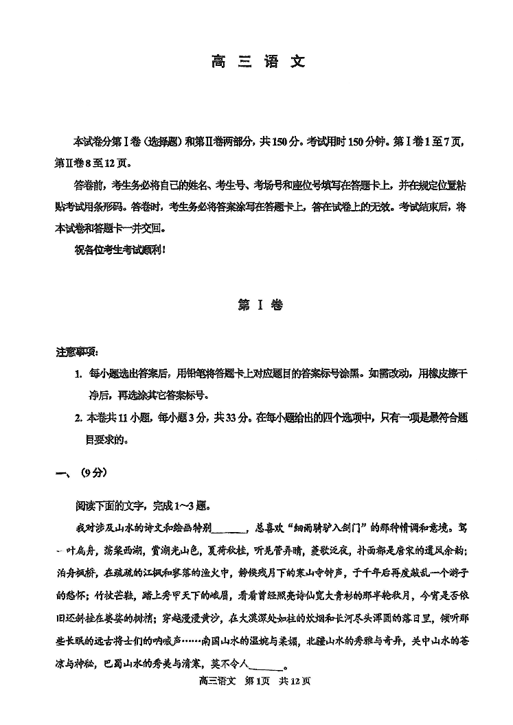 天津市红桥区2025-2026学年度第二学期高三年级第一次质量检测 语文.pdf