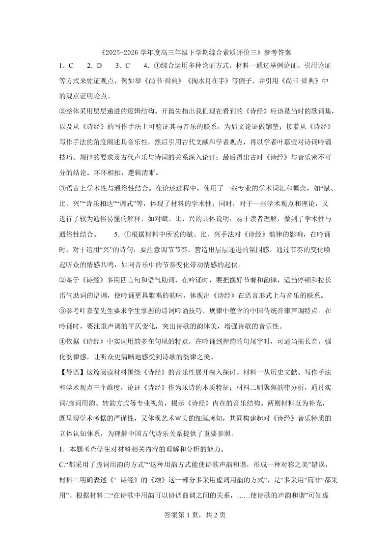 河北省衡水中学2025-2026学年高三年级下学期综合素质评价三 语文答案.pdf
