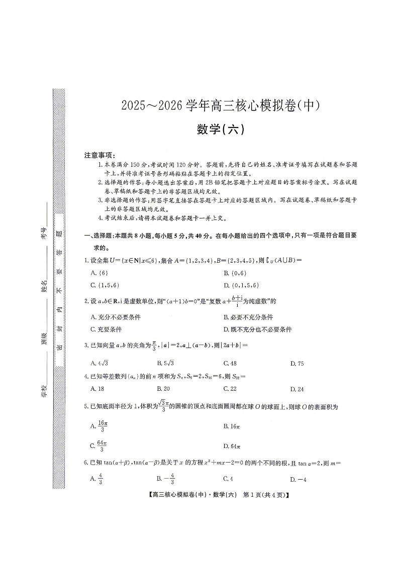 2025~2026学年高三核心模拟卷(六)数学.pdf