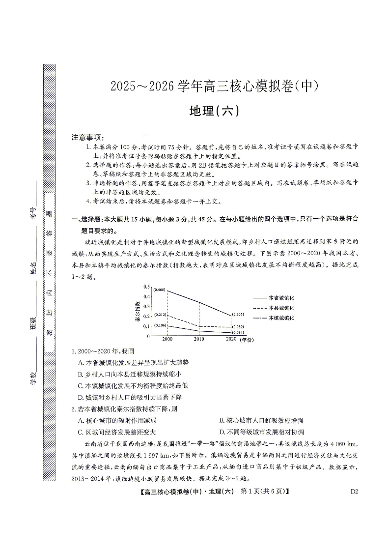 2025~2026学年高三核心模拟卷(六)地理.pdf