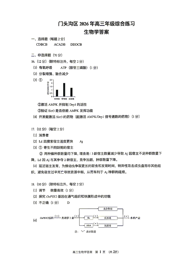 北京市门头沟区2026年高三下学期综合练习 生物答案.pdf