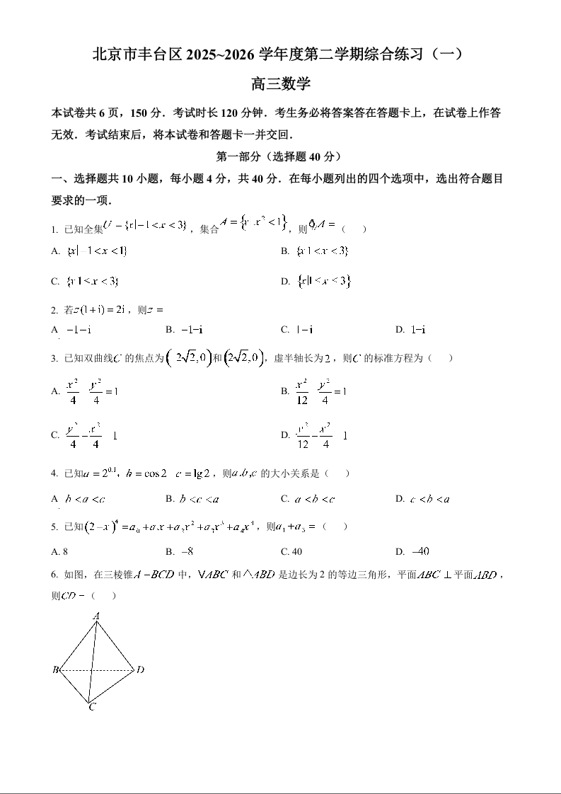北京市丰台区2025-2026学年度高三第二学期综合练习(一)数学.docx
