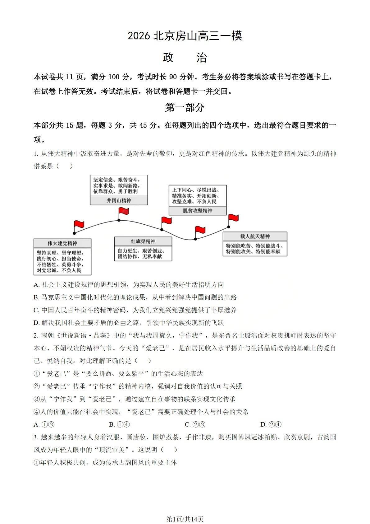 北京市房山区2026年高三年级第一次综合练习 政治答案.pdf
