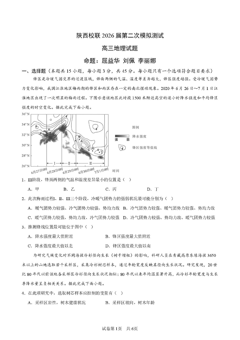 陕西省校联(西安市,渭南市,榆林市)2026届高三第二次模拟测试 地理.pdf