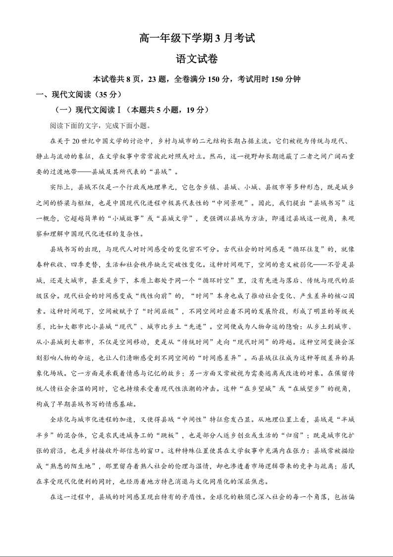 湖北十堰市郧阳中学2025-2026学年高一下学期3月月考 语文答案.docx
