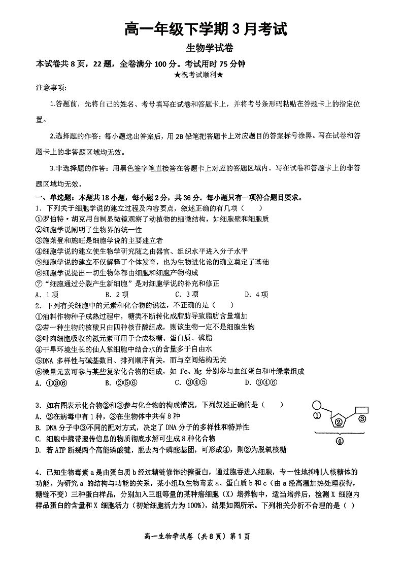 湖北十堰市郧阳中学2025-2026学年高一下学期3月月考 生物.pdf