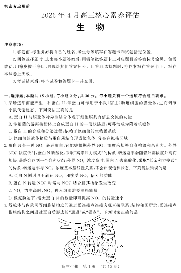 山东省名校考试联盟2026年4月高三核心素养评估 生物.pdf