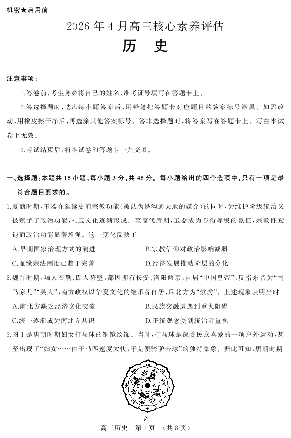 山东省名校考试联盟2026年4月高三核心素养评估 历史.pdf