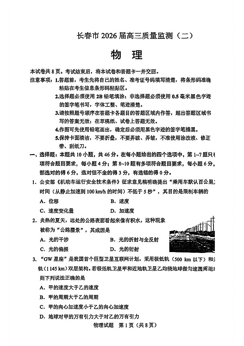 吉林省长春市2026届高三年级质量监测(二)物理.pdf