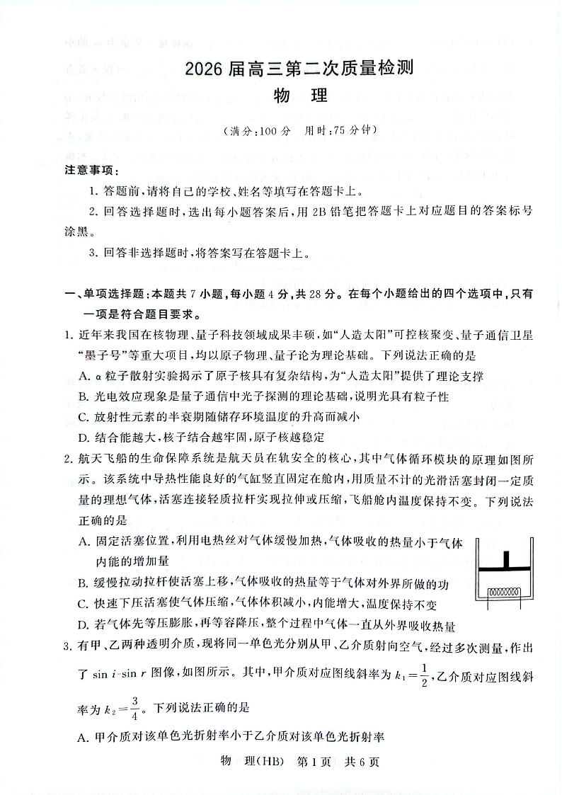 T8联考2026届高三年级第二次质量检测 物理.pdf