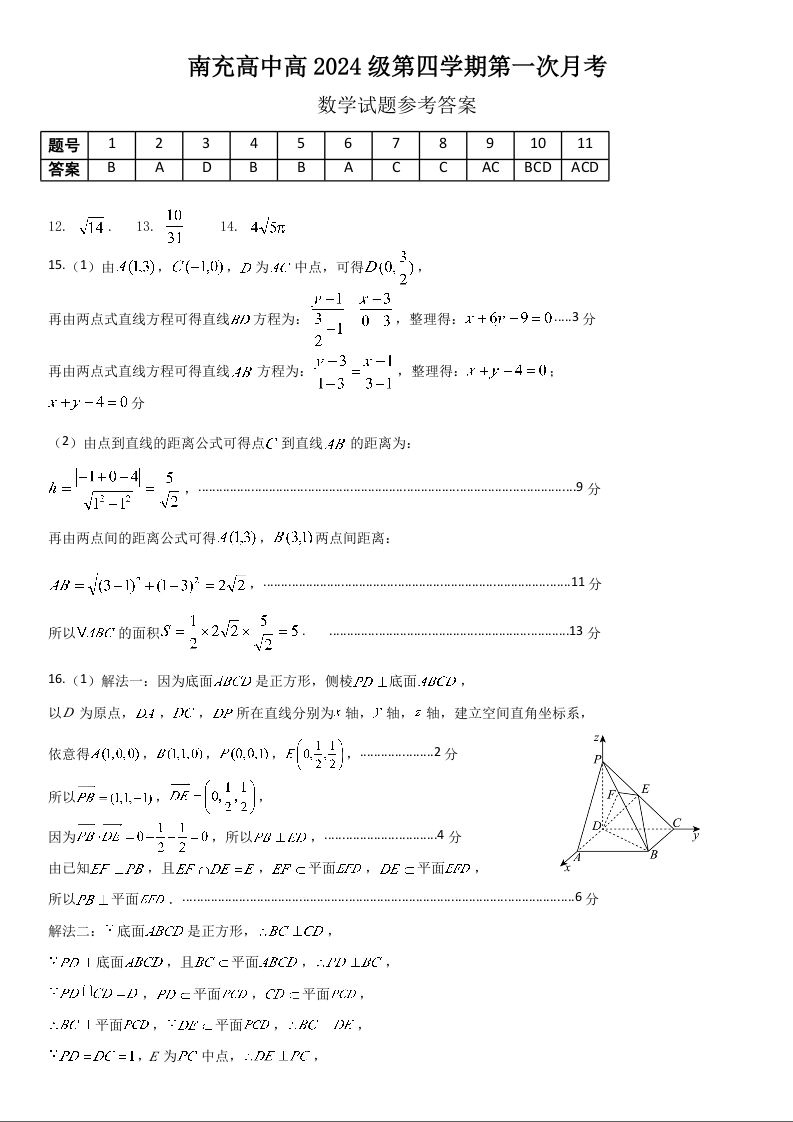 四川省南充高级中学2025-2026学年高二下学期第一次月考 数学答案.docx