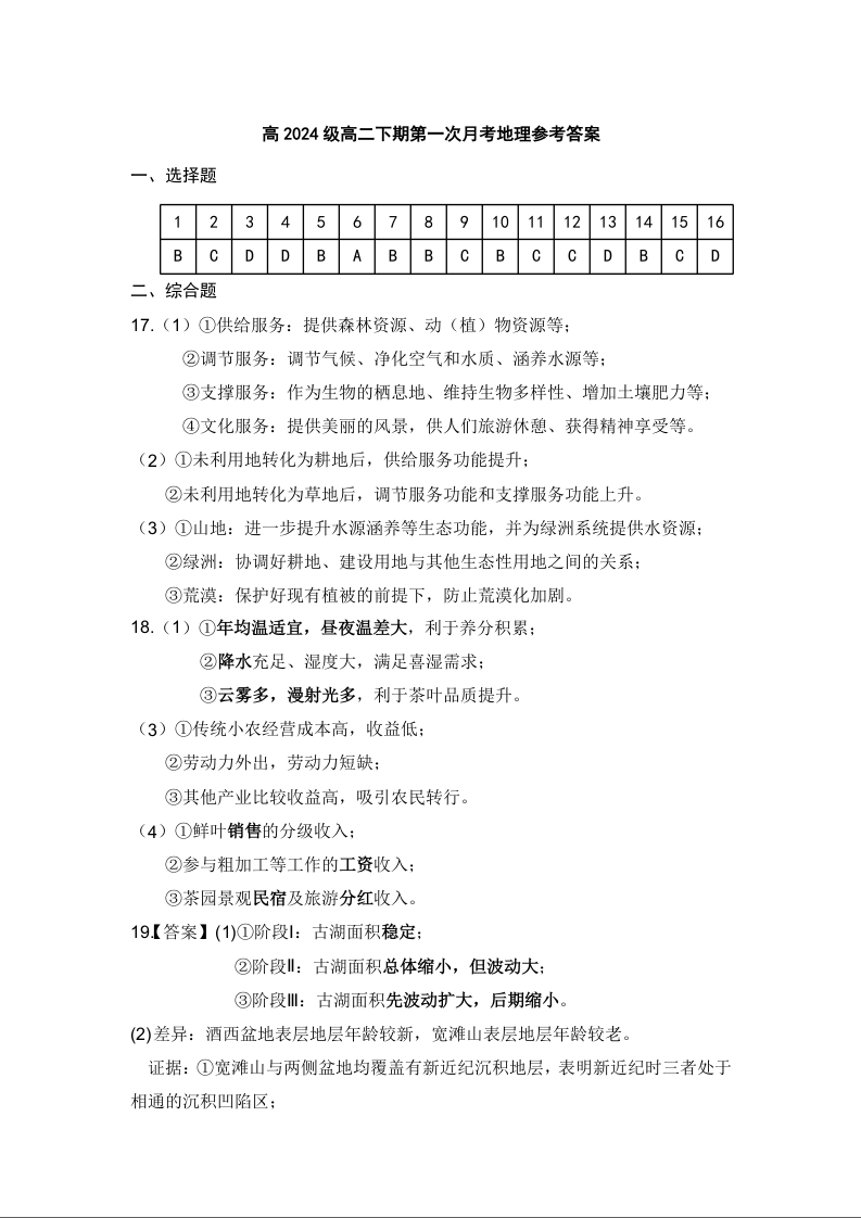 四川省南充高级中学2025-2026学年高二下学期第一次月考 地理答案.docx