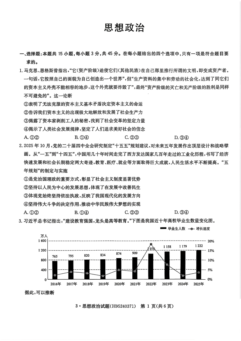 华大新高考联盟2026届高三3月教学质量测评 政治试题(含答案).pdf