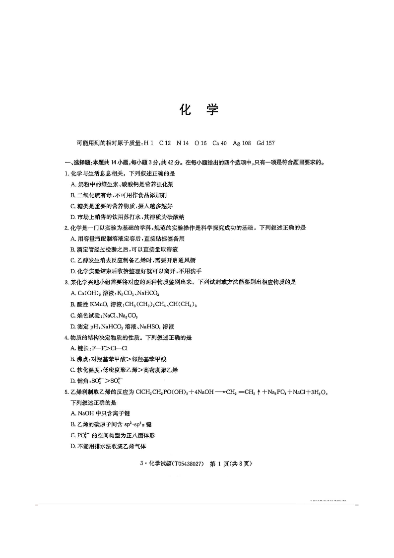 华大新高考联盟2026届高三3月教学质量测评 化学试题(含答案).pdf