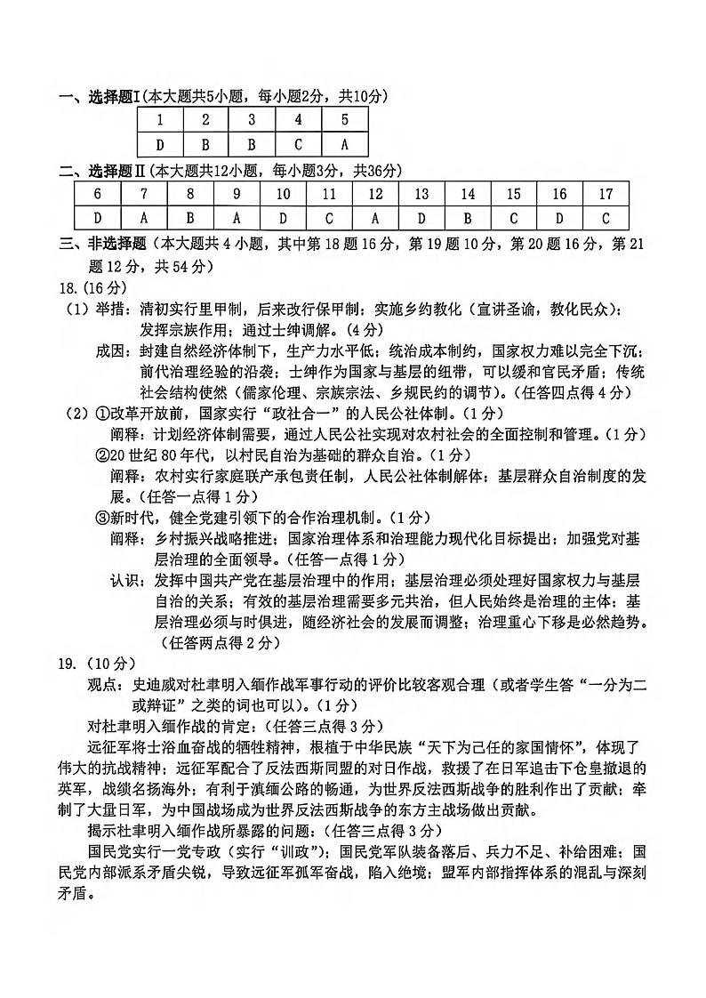 台州市2026届高三第二次教学质量评估试题 历史答案.pdf