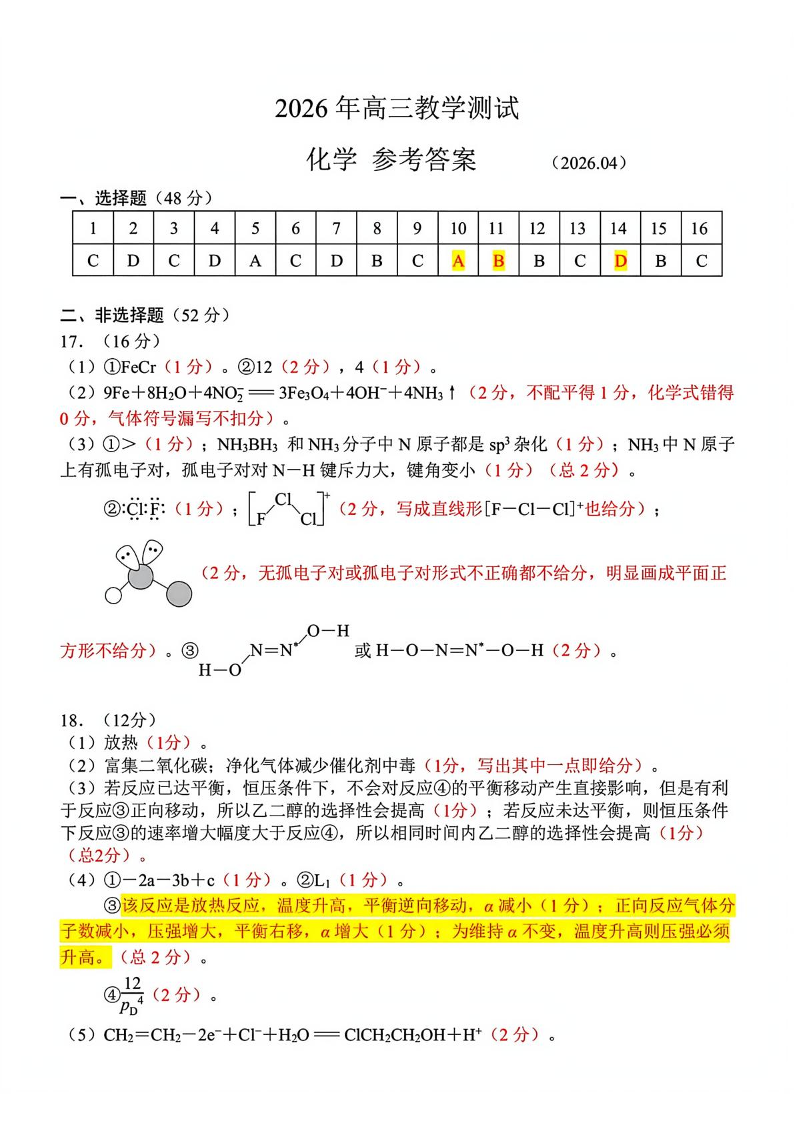 浙江省嘉兴市2026届高三下学期4月教学测试(嘉兴二模)化学答案.pdf