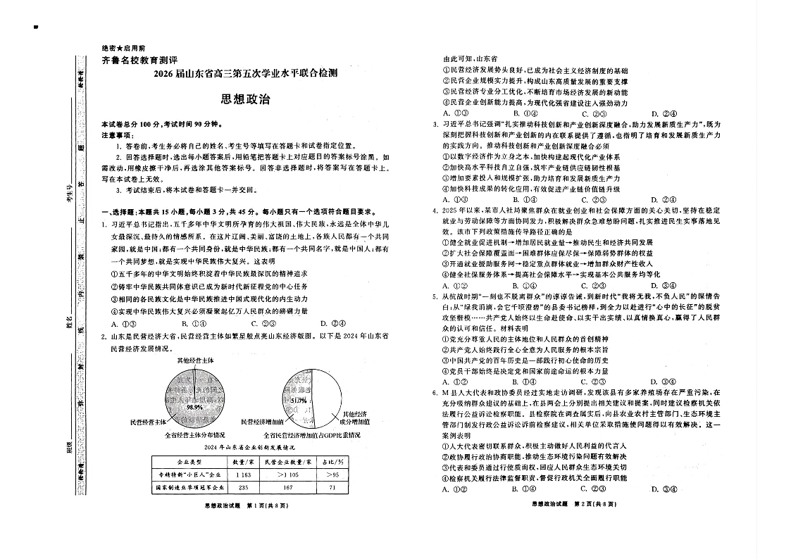 齐鲁名校大联考2026届山东省高三年级第五次学业水平联合检测 政治.pdf