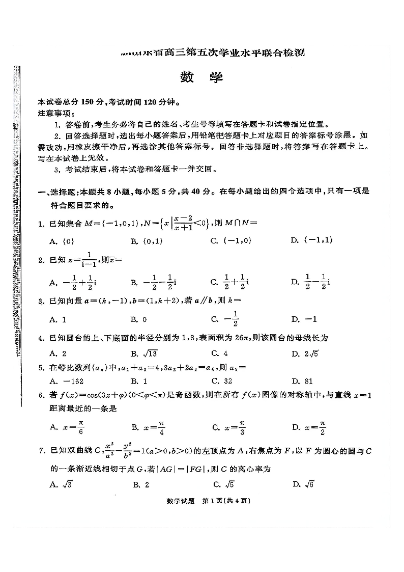 齐鲁名校大联考2026届山东省高三年级第五次学业水平联合检测 数学.pdf