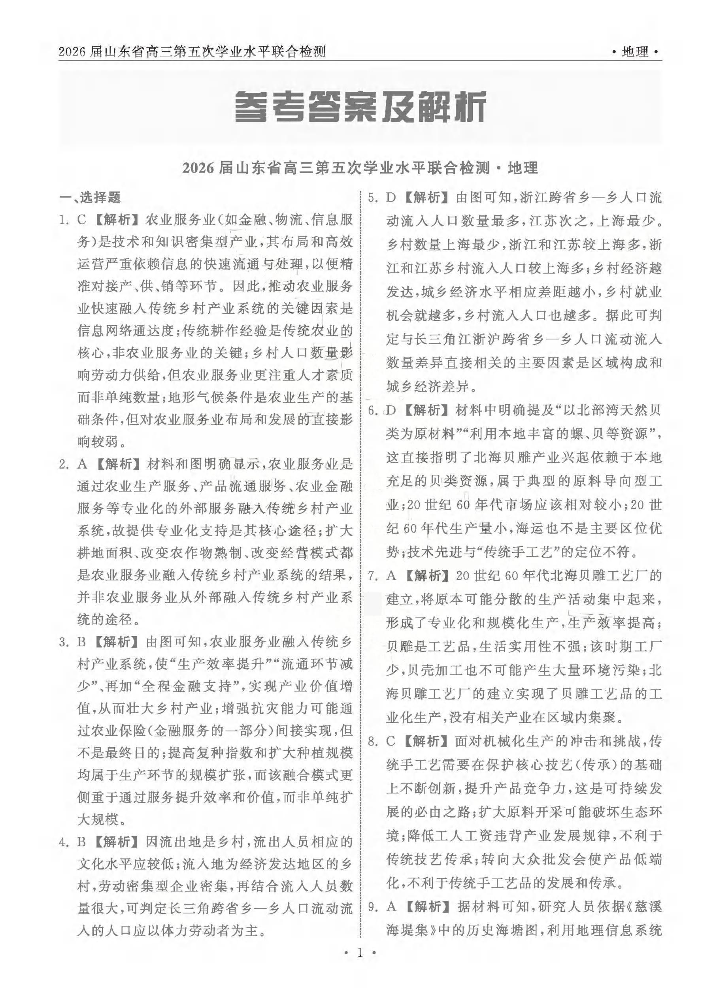 齐鲁名校大联考2026届山东省高三年级第五次学业水平联合检测 地理答案.pdf