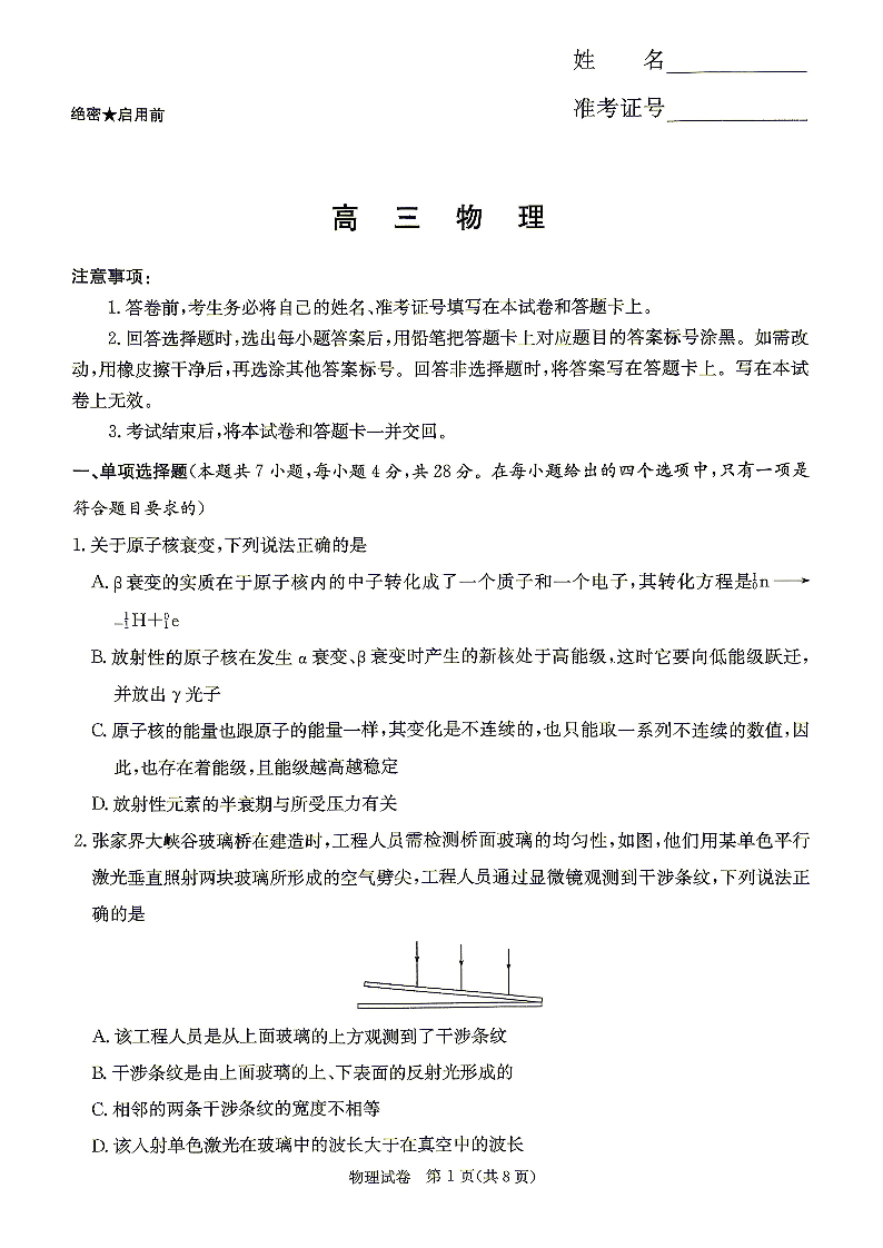 新高考教学教研联盟(长郡二十校)高三下学期4月第二次联考 物理.pdf