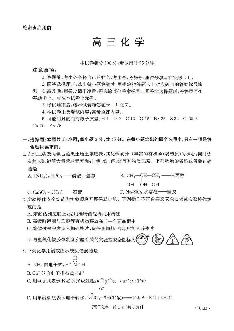 辽宁省抚顺市六校协作体2026届高三下学期一模考试 化学.pdf