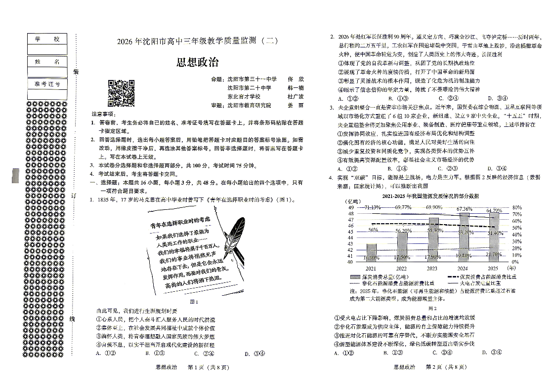 2026年沈阳市高中三年级教学质量监测(二)政治.pdf