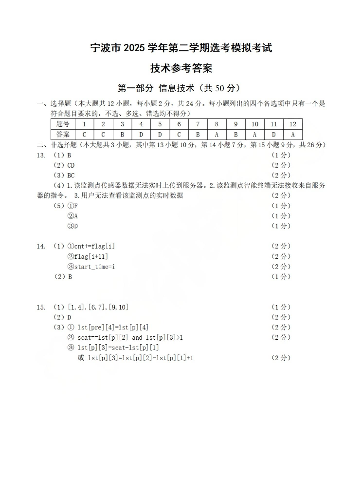 宁波市2025学年第二学期高考模拟考试 技术答案.pdf