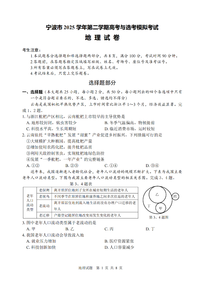 宁波市2025学年第二学期高考模拟考试 地理.pdf