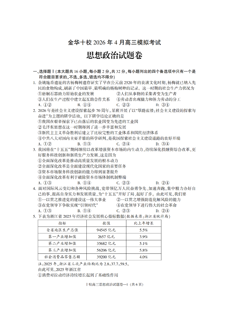 金华十校2026年4月高三模拟考试 政治.pdf