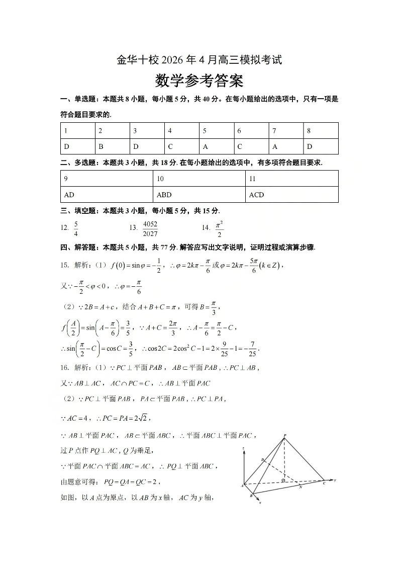 金华十校2026年4月高三模拟考试 数学答案.pdf