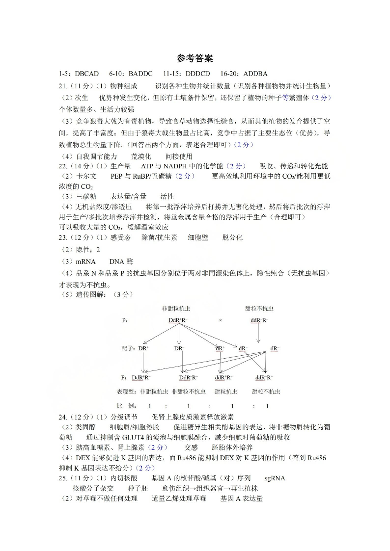 金华十校2026年4月高三模拟考试 生物答案.pdf
