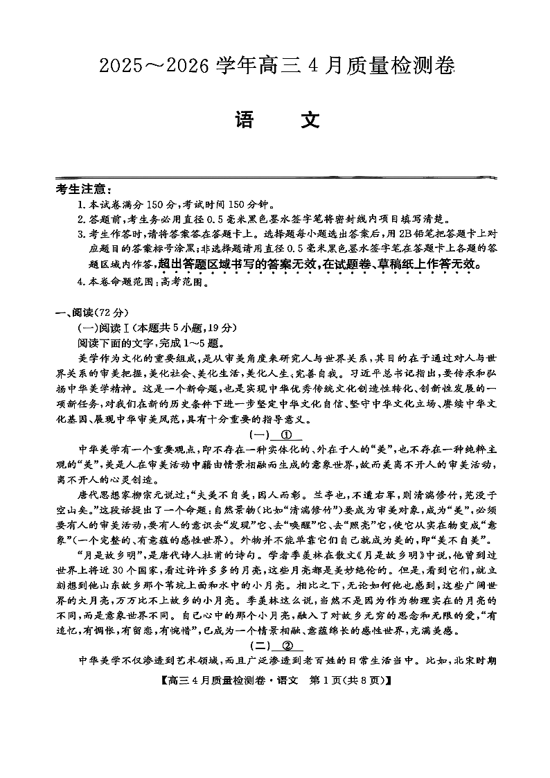 山西省卓越联盟2025~2026学年高三4月质量检测卷 语文.pdf