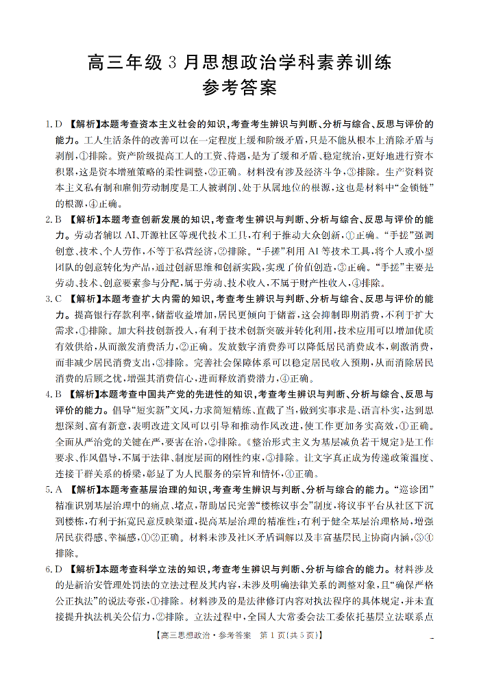 江西省2026届高三年级3月学科素养训练 政治答案.pdf