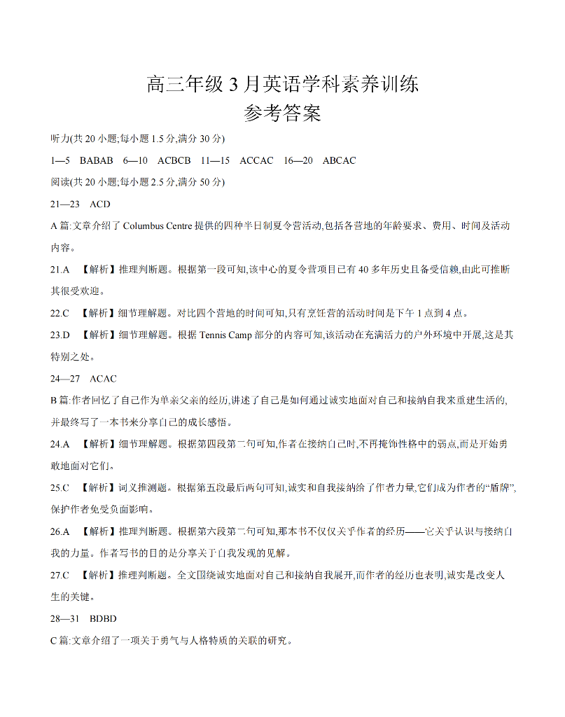 江西省2026届高三年级3月学科素养训练 英语答案.pdf
