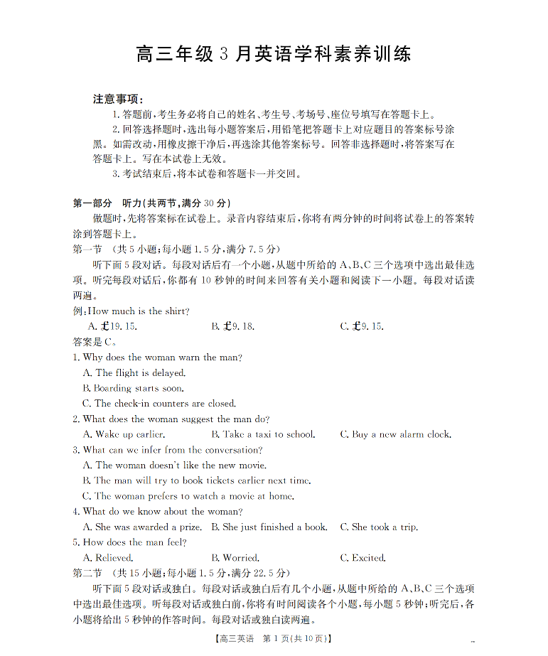 江西省2026届高三年级3月学科素养训练 英语.pdf