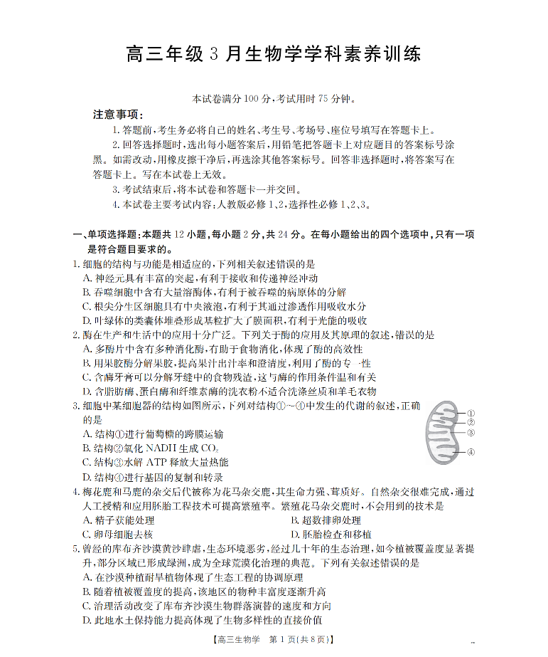 江西省2026届高三年级3月学科素养训练 生物.pdf