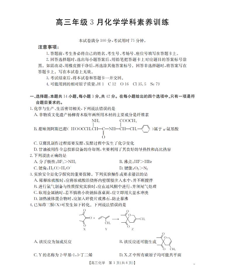 江西省2026届高三年级3月学科素养训练 化学.pdf